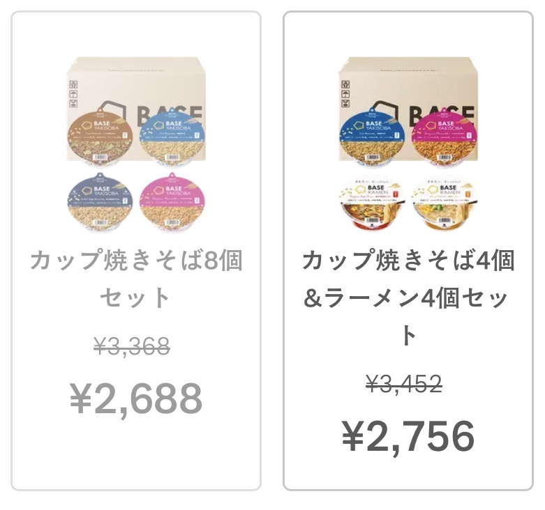 | ベースヤキソバ | 塩焼きそば、トムヤムまぜそば【各2個】 |
