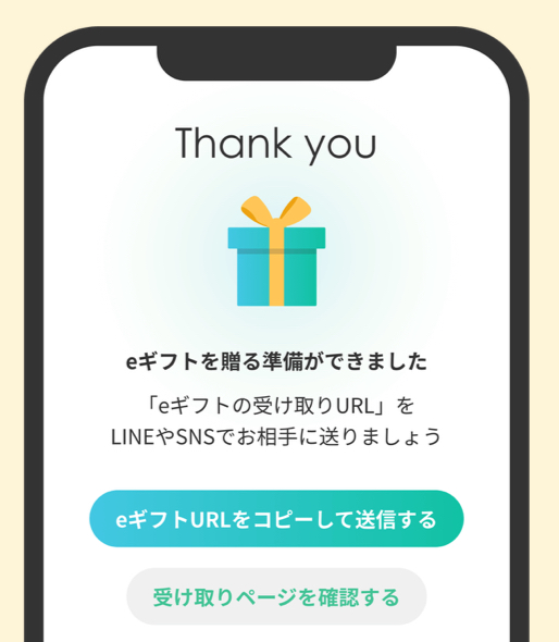 27.贈る相手に、LINEやSNS、メール等で、『eギフト受け取りURL』を送る。